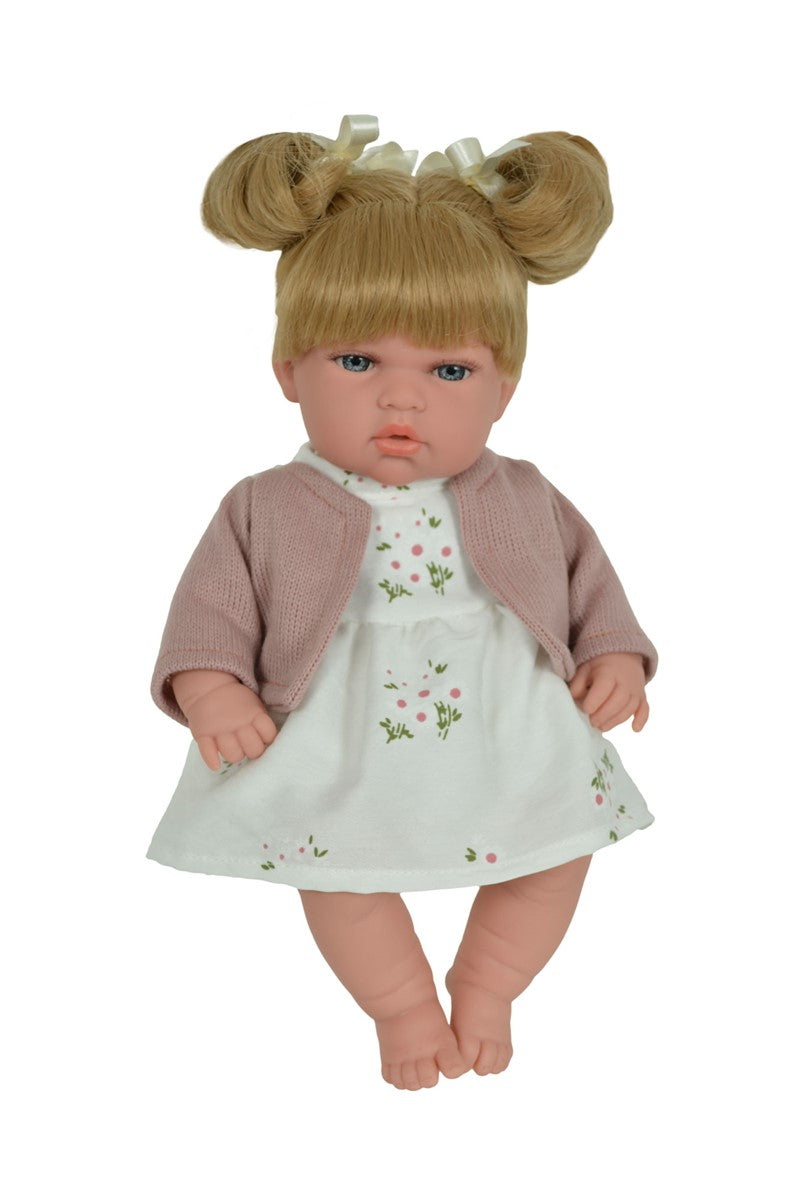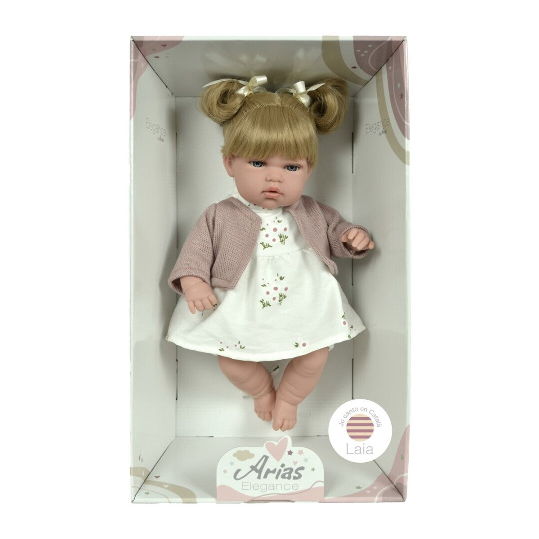 Muñeca Laia 33 cm con mecanismo. Vestida en tono rosa maquillaje y