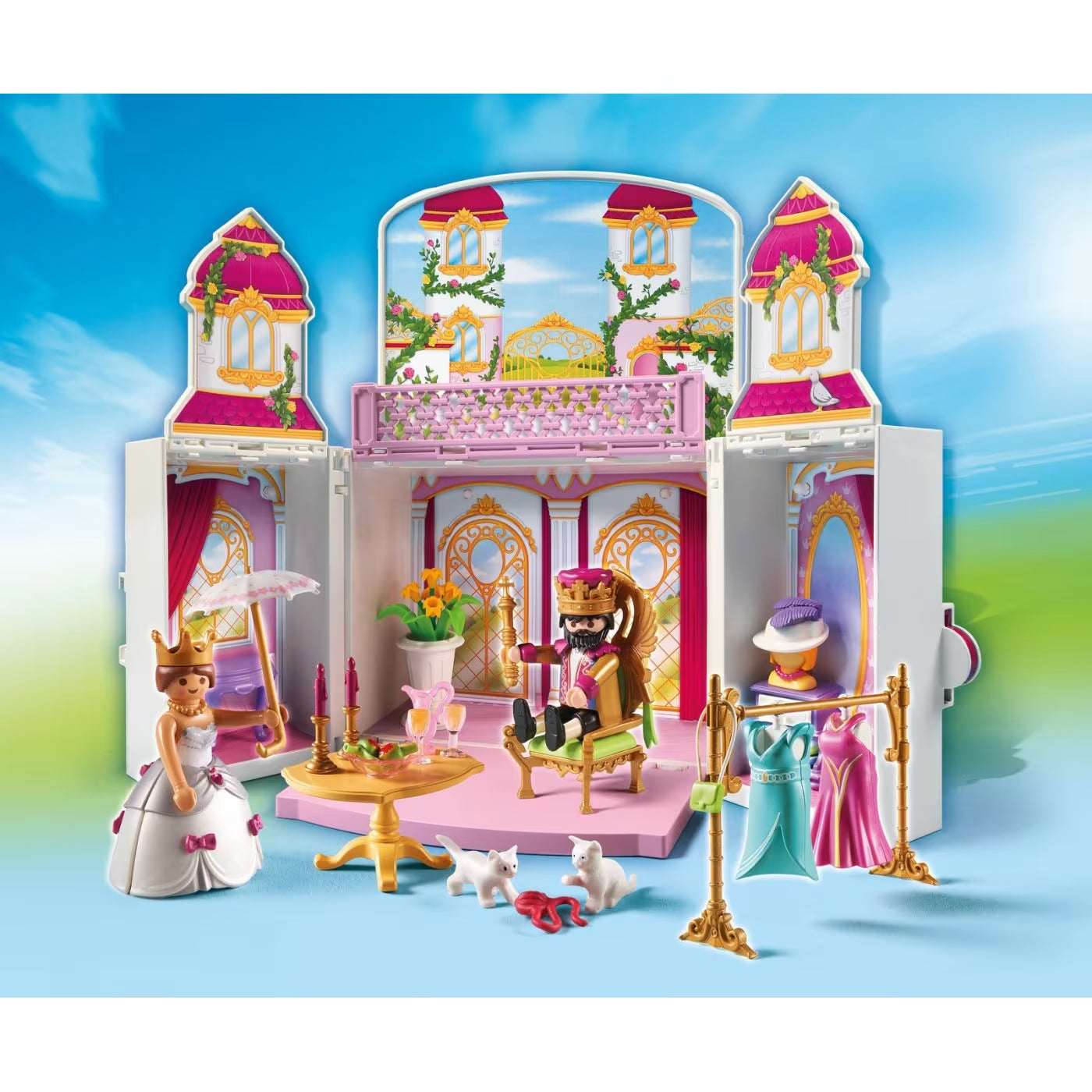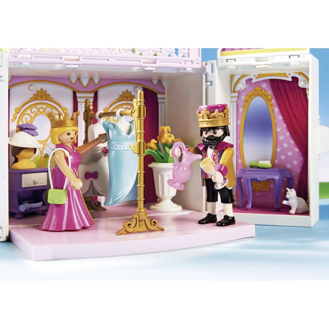 - Este práctico cofre de almacenamiento mantiene todas las figuras y accesorios perfectamente organizados y ¡puede llevarse a cualquier parte! Incluye dos figuras, una sala del trono, un vestidor y accesorios.