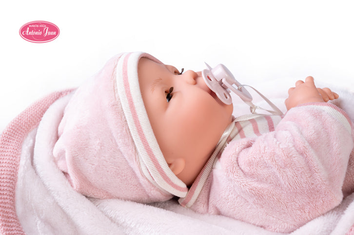 - Si la acuestas cerrará sus ojitos y se dormirá tranquilamente. Bimba es una muñeca con mecanismo de sonido de Muñecas Antonio Juan.
