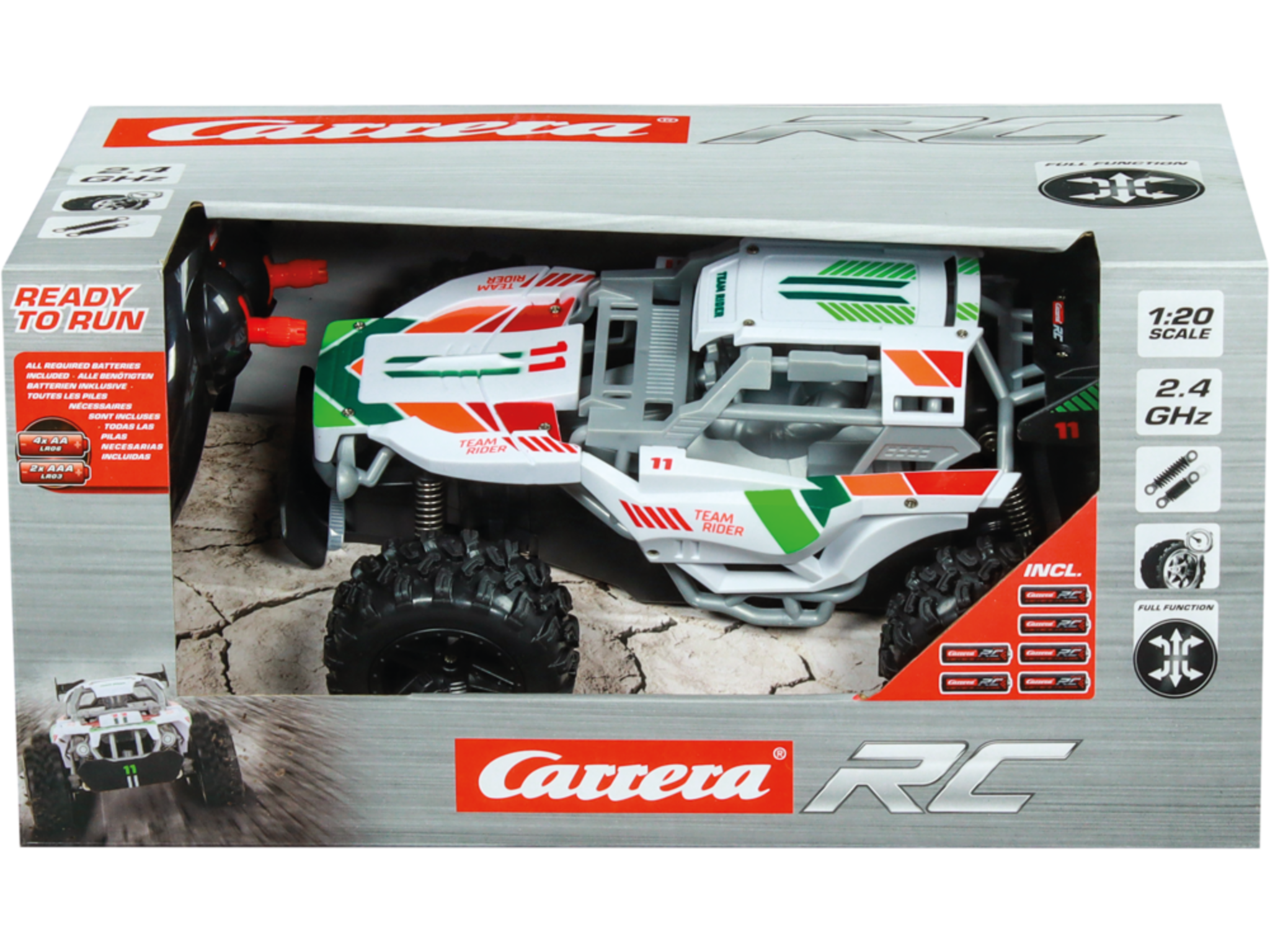 - Diversión al aire libre con el Team Rider.Sal al exterior con el piloto del Carrera RC Team! Este genial 23 cm/9.1 pulg. Es el compañero perfecto para el jardín o el parque, ya que nada lo detiene.