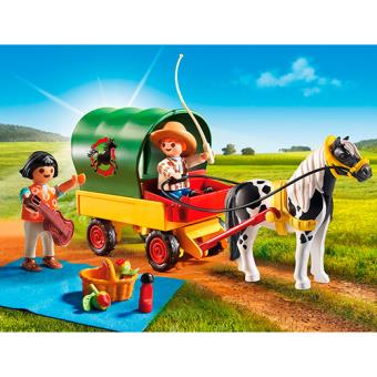 Poni con carro PLAYMOBIL para ir de picnic campestre. Incluye 2 figuras Playmobil